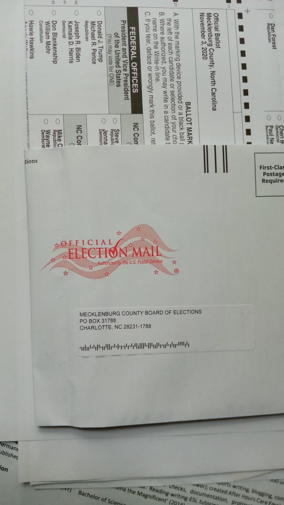 NIMBY – Not In My Back Yard (If its not there, its not my problem) wouldn’t be a new attitude in the current Bigger Picture socially. Still, in a smaller way than a President-elect can do to change how this country does things, every person doing ‘positives’ – like mail in ballots – makes a difference.